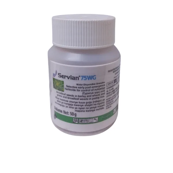 Servian is a selective early post-emergence herbicide for control of yellow nutsedge and purple nutsedges and certain broadleaf weeds in barley, wheat, maize and sugarcane.