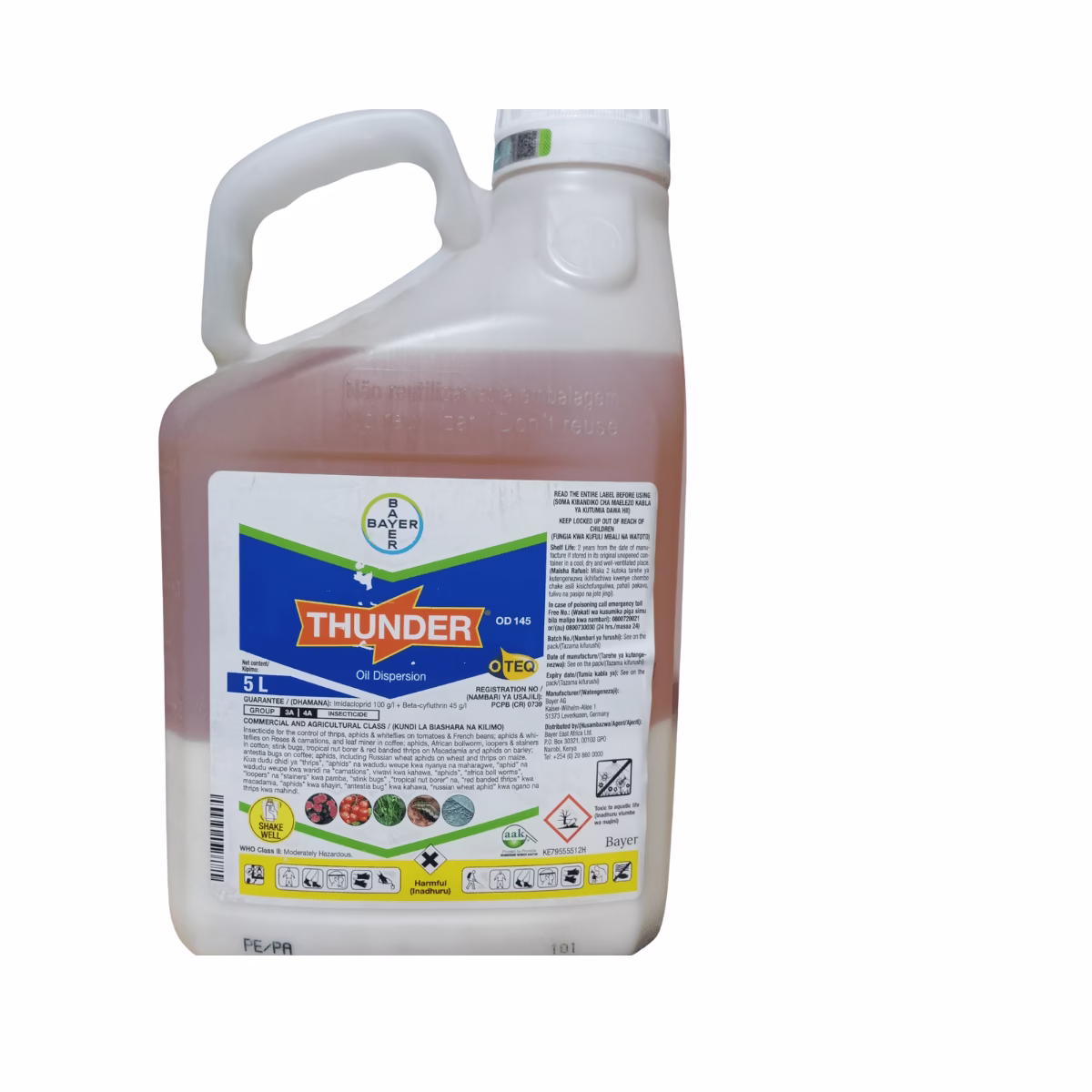 Thunder OD145 A systemic and contact for controlling biting, sucking ( Aphids, Thrips and White flies) and chewing ( African bollworms, Tropical nut borers) insects  with O-TEQ designed to provide long lasting protection ensuring higher crop yields.